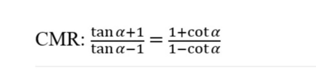 $\begin{array}{l} VT = \dfrac{{\tan \alpha + 1}}{{\tan \alpha - 1}} = \dfrac{{\dfrac{{\sin \alpha }}{{cos\alpha }} + 1}}{{\dfrac{{\sin \alpha }}{{cos\alpha }} - 1}} = \dfrac{{\dfrac{{\sin \alpha + cos\alpha }}{{cos\alpha }}}}{{\dfrac{{\sin \alpha - cos\alpha }}{{cos\alpha }}}} = \dfrac{{\sin \alpha + cos\alpha }}{{\sin \alpha - cos\alpha }}\\ VP = \dfrac{{1 + \cot \alpha }}{{1 - \cot \alpha }} = \dfrac{{1 + \dfrac{{cos\alpha }}{{\sin \alpha }}}}{{1 - \dfrac{{cos\alpha }}{{\sin \alpha }}}} = \dfrac{{\dfrac{{\sin \alpha + cos\alpha }}{{\sin \alpha }}}}{{\dfrac{{\sin \alpha - cos\alpha }}{{\sin \alpha }}}} = \dfrac{{\sin \alpha + cos\alpha }}{{\sin \alpha - cos\alpha }} \end{array}$