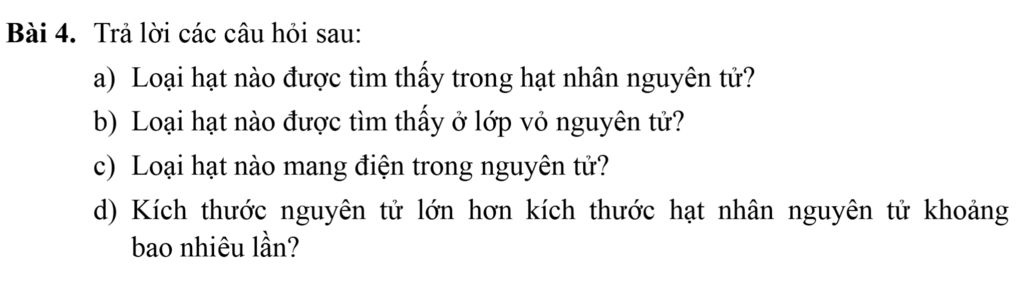 (d) Đường kính của nguyên tử lớn so với hạt nhân nguyên tử khoảng 10.000 lần