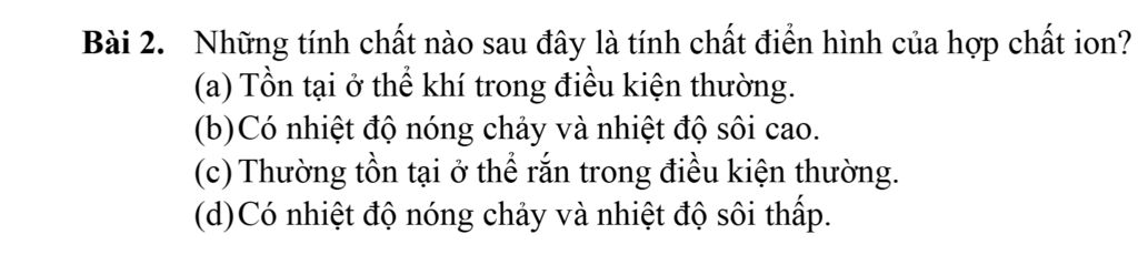 - Các hợp chất ion đều khá rắn, khó nóng chảy, khó bay hơi.