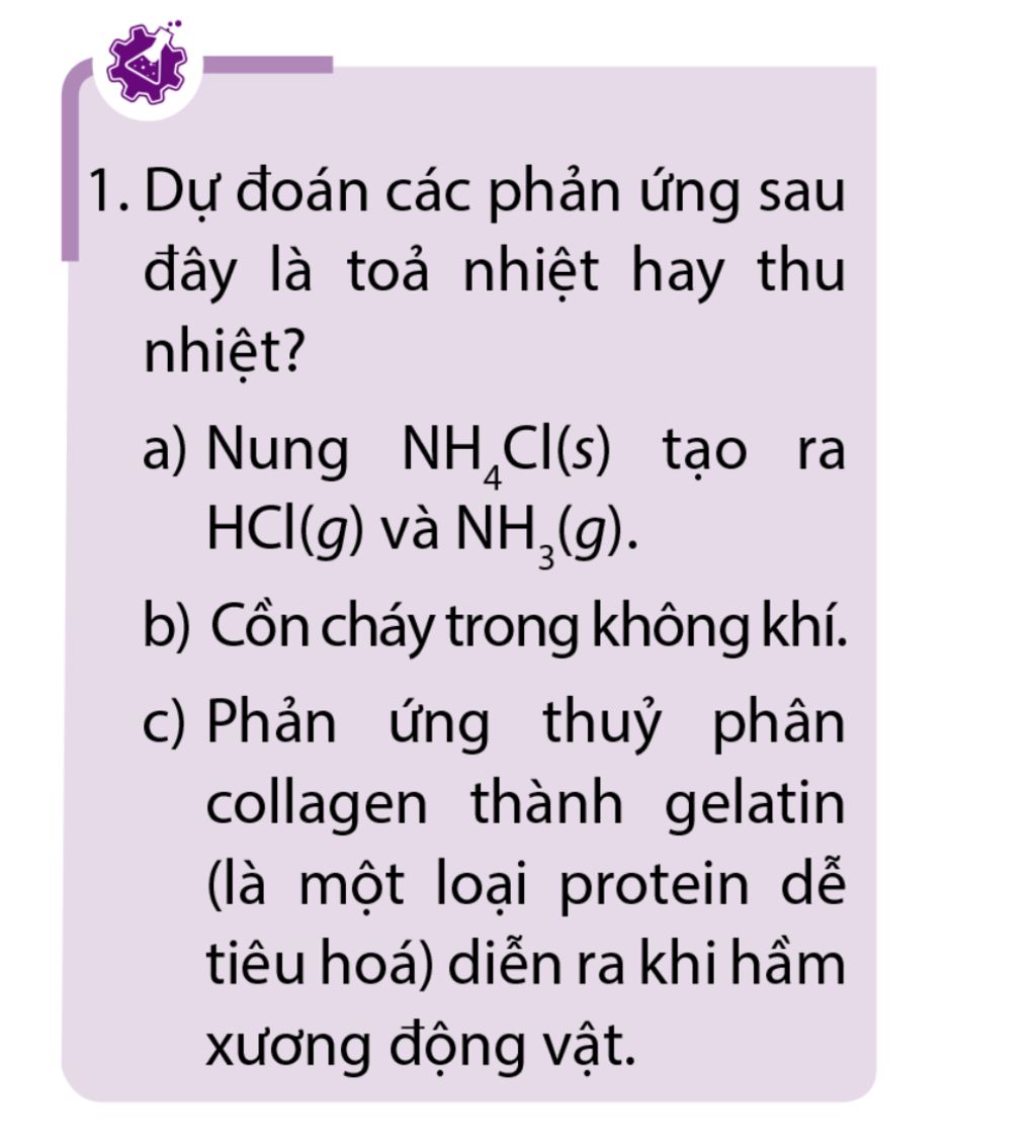 c) Phản ứng thủy phân collagen thành gelatin (là một loại protein dễ tiêu hóa) diễn ra khi hầm xương động vật là phản ứng thu nhiệt.