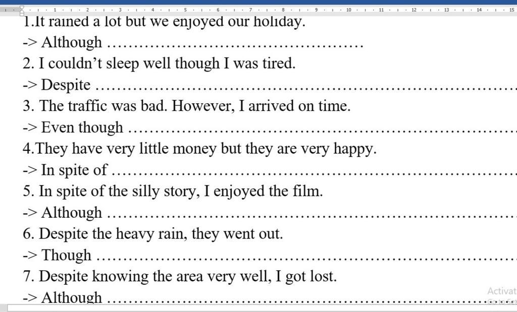 `-` Despite / In spite of + V-ing / N + Clause : Mặc dù