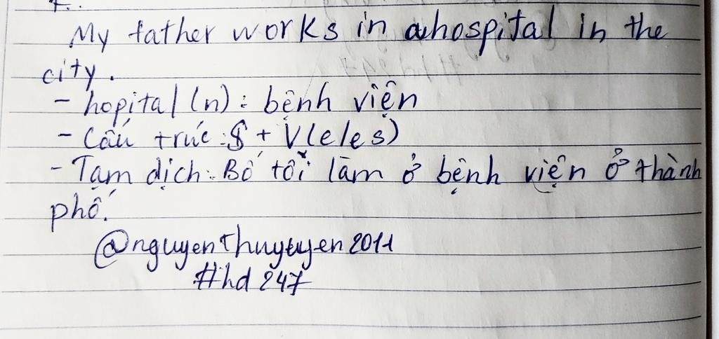`->` `T`ranslate : `C`ha của tôi làm việc ở một bệnh viện tại thành phố