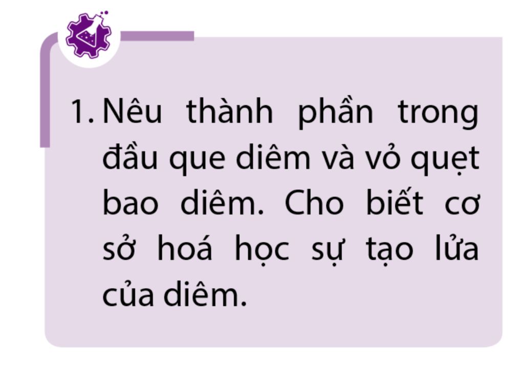 Phần đầu que diêm : là hỗn hợp photpho đỏ , KClO3 , bột xxit chì , bột thủy tinh và chất keo dính