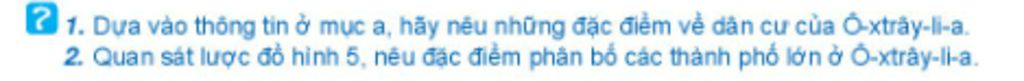 - Những đặc điểm về dân cư của Ô-xtrây-li-a: