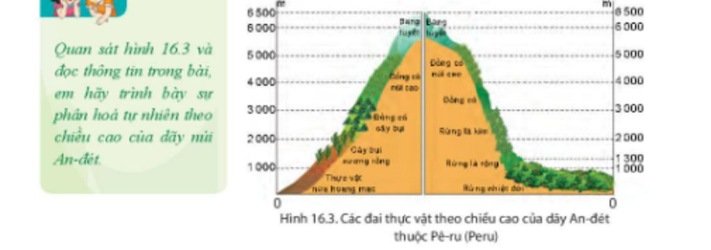 - Do địa hình núi cao nhiều đỉnh núi vượt qua 6000m nên thiên nhiên miền núi An-đét có sự thay đỏi theo chiều cao.