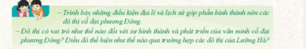 * Điều kiện địa lí và lịch sử góp phần hình thành nên các đô thị cổ đại phương Đông: