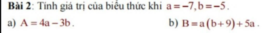 Khi `a=-7;b=-5` vào biểu thức `B` ta được :