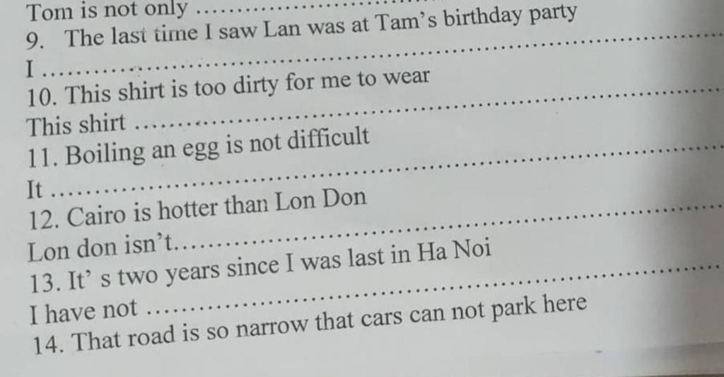 `9.` I hasn't seen Lan since when Tam's birthday party.