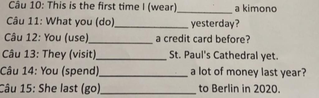 `->` S + last + Ved / V2 + time / timeline : Lần cuối làm gì