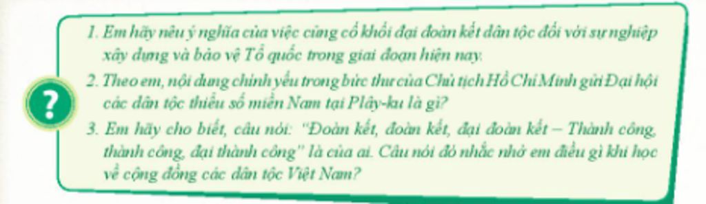 - Khối đại đoàn kết là nguồn sức mạnh để cộng đồng các dân tộc Việt Nam bảo vệ độc lập, chủ quyền và toàn vẹn lãnh thổ của đất nước.