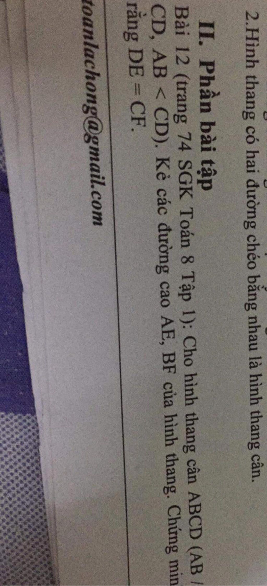2.Hình thang có hai đường chéo bằng nhau là hình thang cân.