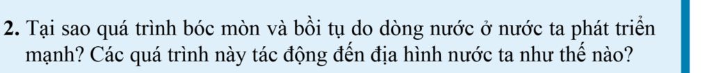 - Quá trình bóc mòn và bồi tụ do nước ở Việt Nam phát triển vì: