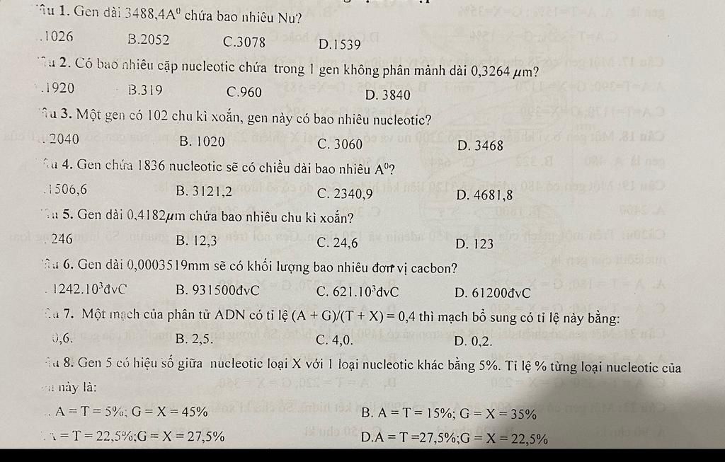 $\dfrac{A+G}{T+X}=0,4=\dfrac{2}5$ bổ sung với$\dfrac{T+X}{A+G}=$ $\dfrac{5}{2}=2,5$