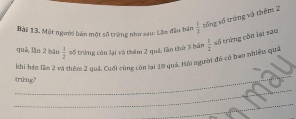 nếu không bán 2 quả trứng vào lần 1 thì số trứng còn lại sau khi bán lần 1 là: