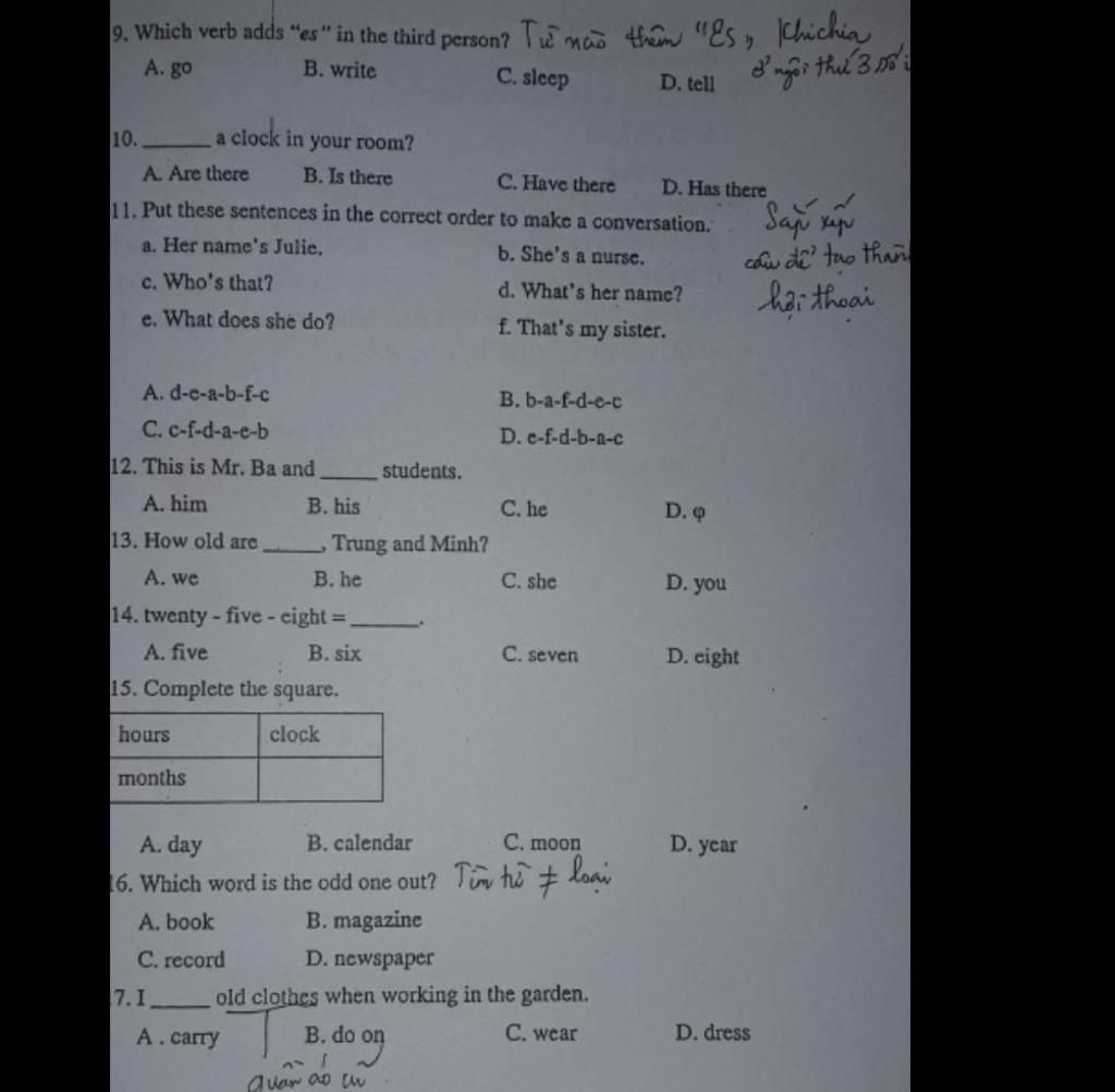 `16. C` động từ còn lại là danh từ