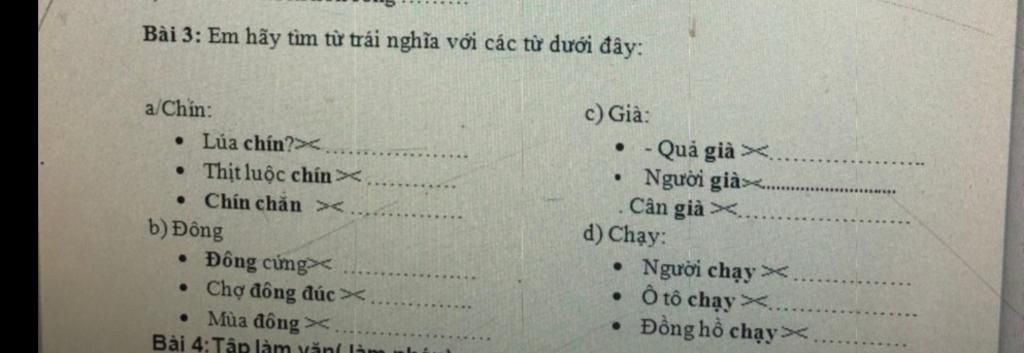 __`3)` : Em hãy tìm từ trái nghĩa với các từ dưới đây: