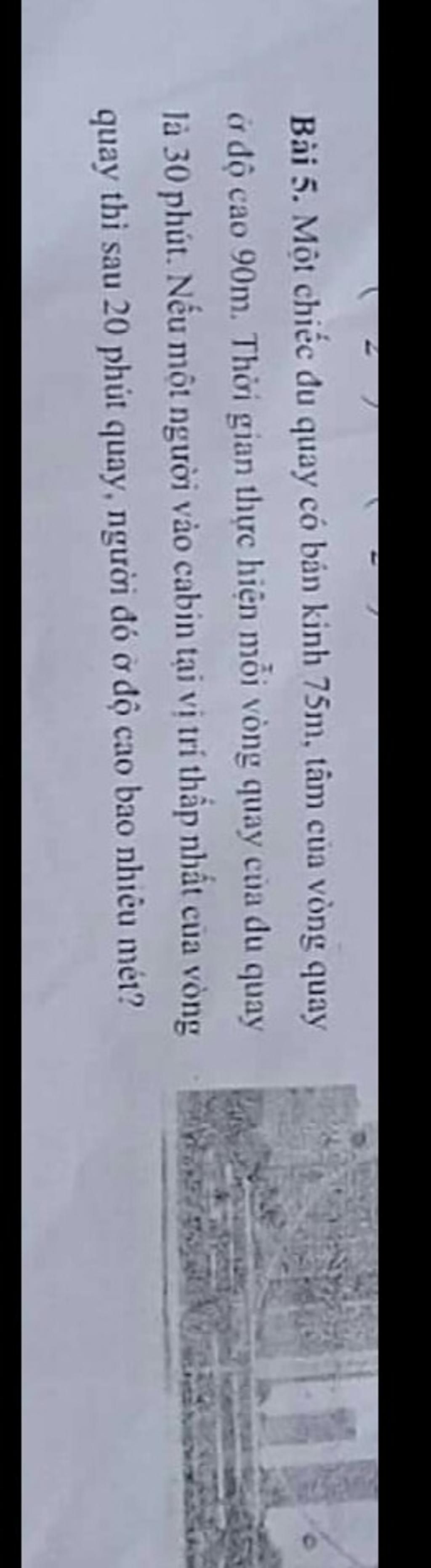 A là vị trí cabin thấp nhất. M là vị trí cabin sau 20 phút quay.