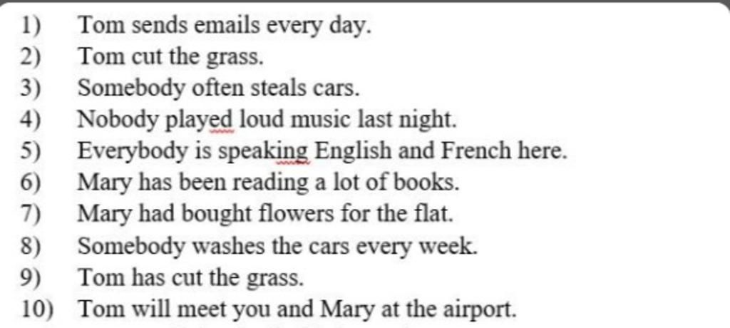 9. The grass has been cut by Tom