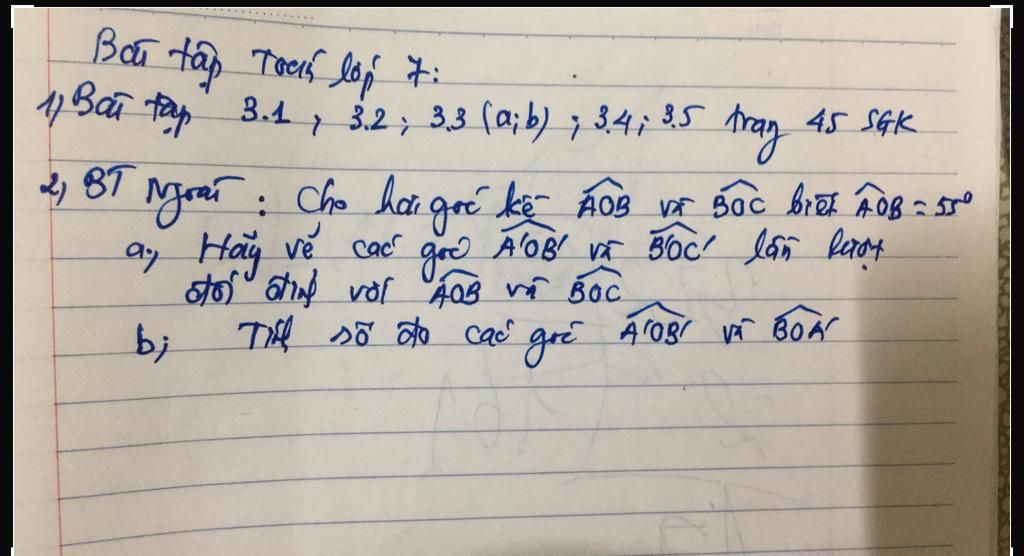 2 BT ngoài cho hai góc kề ÁOB và Bộc biết ÂUB 50