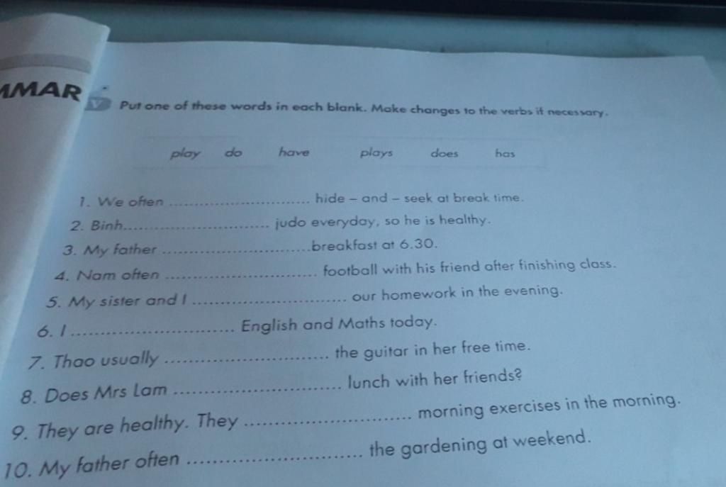`-` N(số ít) : he/she/it/... + does/doesn't/V(s/es)