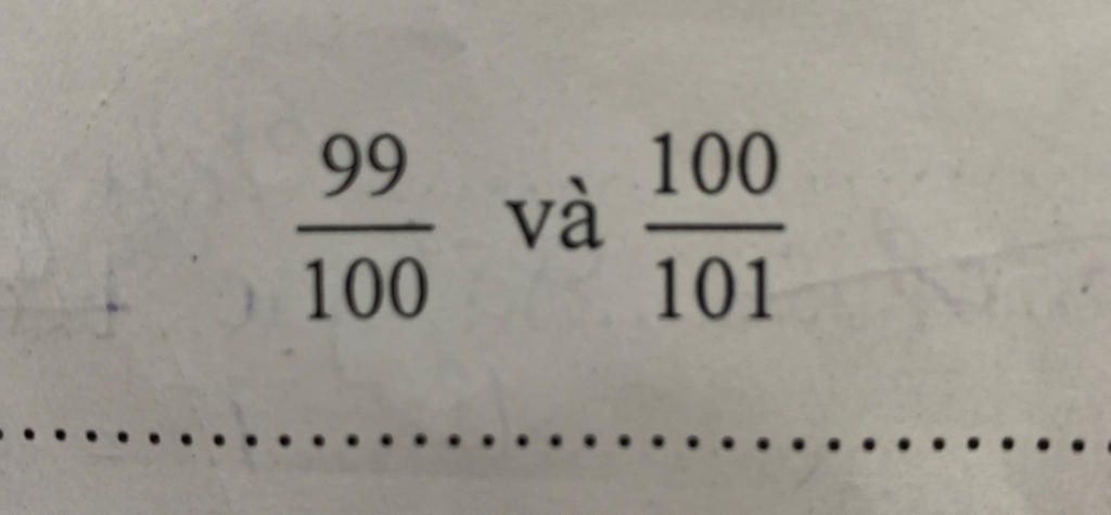 Vì `1/100 > 1/101` nên `99/100 < 100/101`