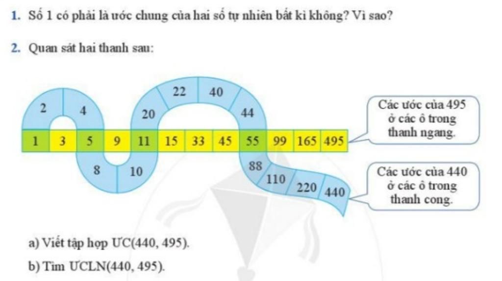 Số 1 là ước chung của hai số tự nhiên bất kì. Bởi vì tất cả các số tự nhiên đều có ước số là số 1.