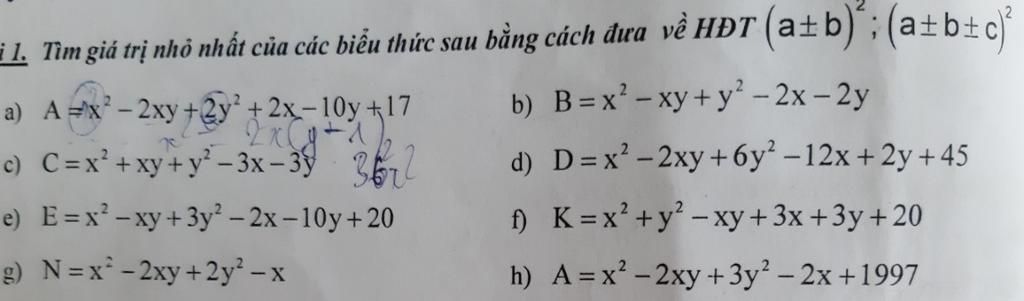 i 1. Tìm giá trị nhỏ nhất của các biểu thức sau bằng cách đưa về HĐT(a+b);(a+b+c