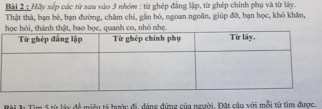 3)Từ láy: thật thà, bạn bè, chăm chỉ, ngoan ngoãn, thành thật, nhỏ nhẹ, khó khăn