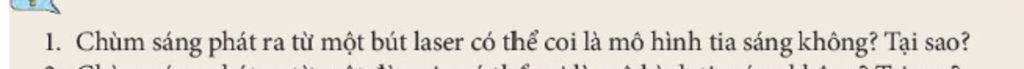 Chùm sáng phát ra từ một bút laser có thể coi là mô hình tia sáng vì chùm sáng này song song, truyền thẳng và hẹp.