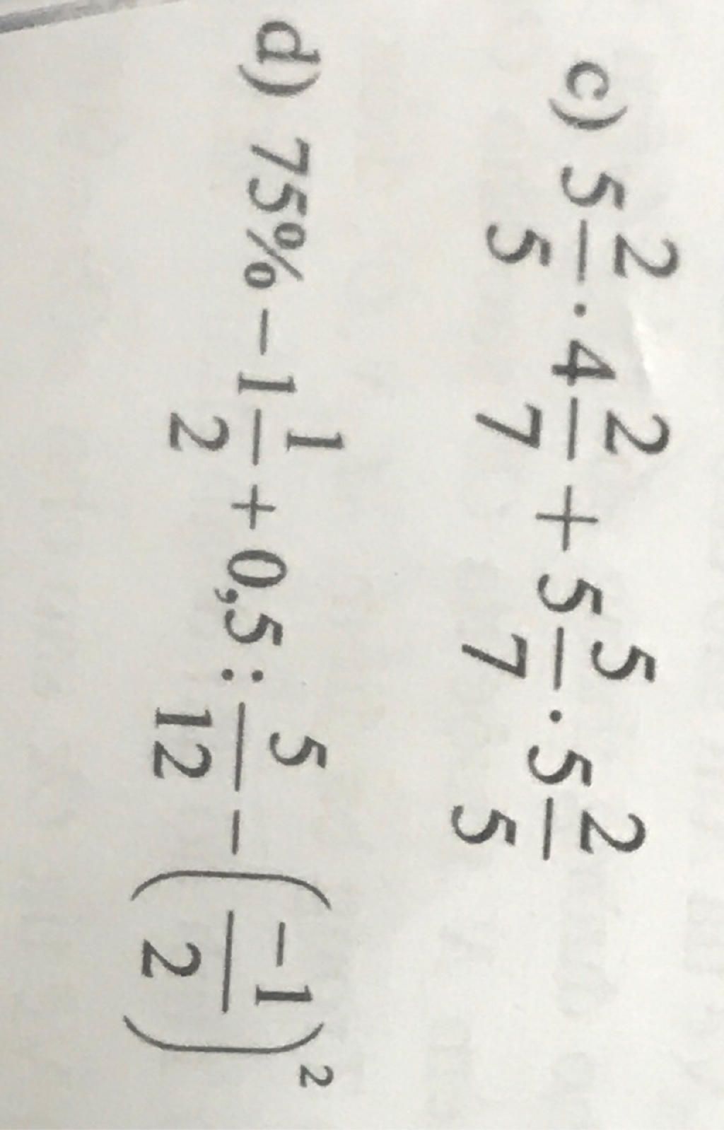 ` d) 75% - 1 1/2 + 0,5 : 5/12 - ( -1/2)^2`