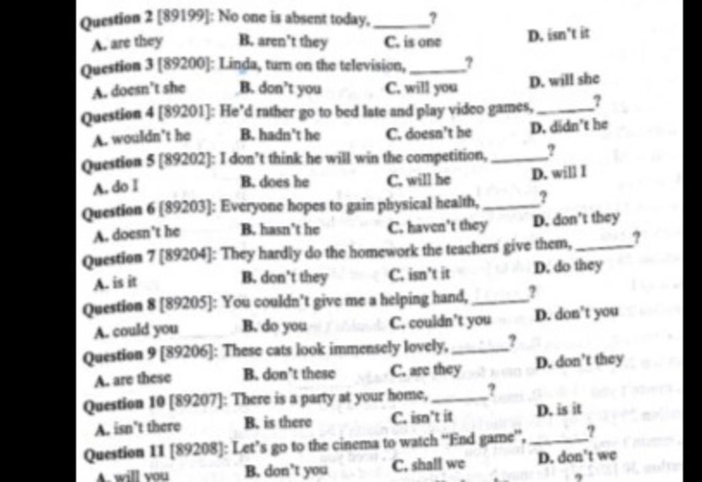 Question 4 [89201]: He'd rather go to bed late and play video games,