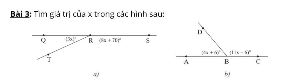 `(3x)^0 + (8x + 70)^0 = 180^0` (tính chất: `1` góc bẹt bằng `180^0` )