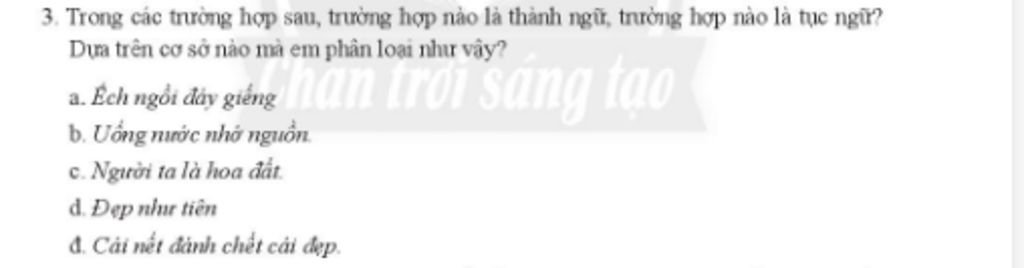 - Thành ngữ: Ếch ngồi đáy giếng, đẹp như tiên, người ta là hoa đất.