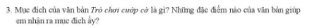 `-` Mục đích của văn bản là nêu ra mục đích, hướng dẫn cách chuẩn bị và cách chơi trò chơi cướp cờ.