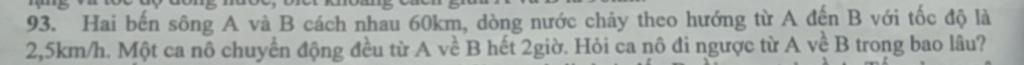 `AB = v_( ng ) . t' => t' = ( AB )/( v_( ng ) ) = 60/25 = 2,4 ( h )`