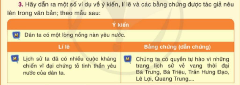 - Ý kiến: "Dân ta có một lòng nồng nàn yêu nước."
