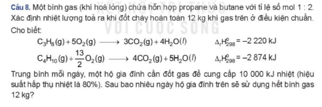 Mỗi ngày gia đình đó dùng 10000kJ nhiệt nên \(478080:10000 = 47,8\) Ngày