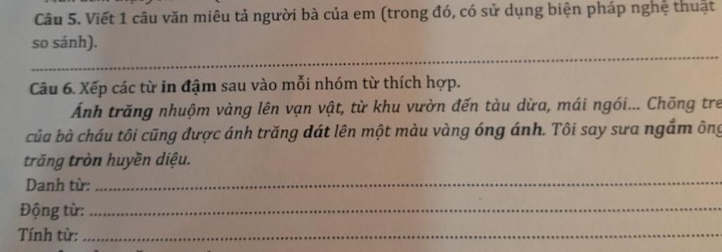 - Tính từ : óng ánh(lung linh, long lanh), tròn ( tròn trịa, trong xoe = tính từ)