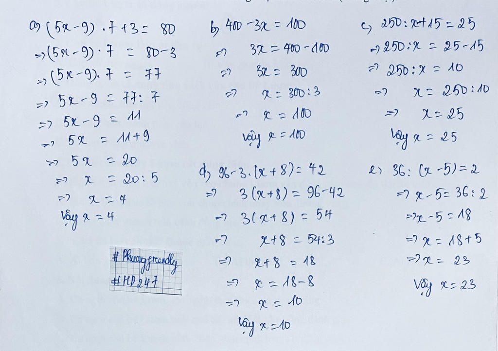 `=> ( 5x - 9 ) . 7 = 80 - 3`