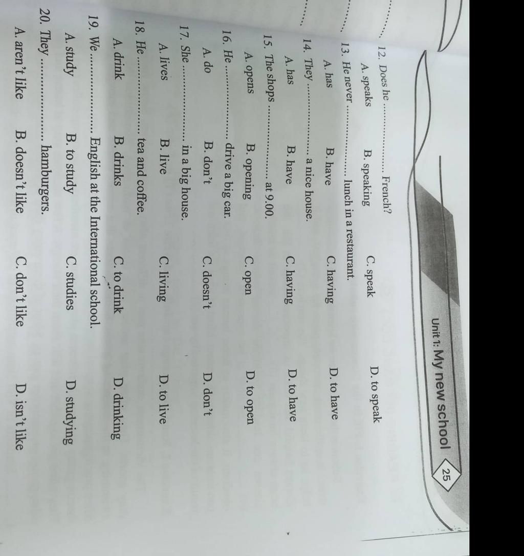 12. C (HTĐ: (?) Do/Does + S + V-infinitive?)