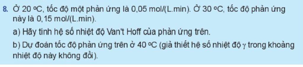 b) Ở 30 độ với \(\gamma \) giữ nguyên thì tốc độ là 0,15 mol/(L.min)