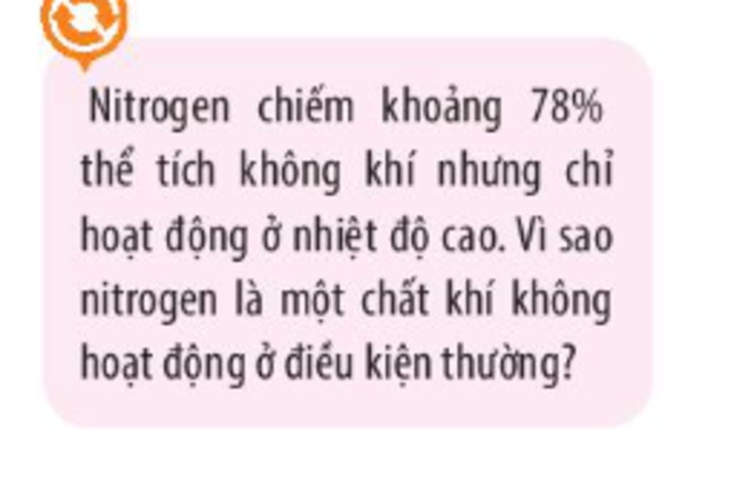 Vì năng lượng liên kết của Nitrogen cao, và Nitrogen có liên kết 3 bền vững, nên khá trơ ở điều kiện thường, cần 1 lượng lớn năng lượng mới có thể bẻ gãy liên kết \(N \equiv N\)