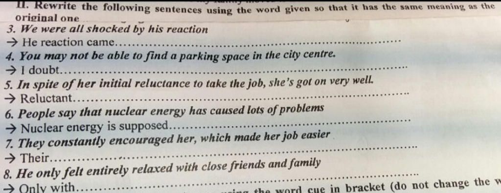 His reaction came as a shock to us. (sửa lại đề bài là His nha)