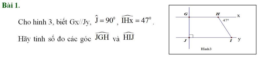 Vì Gx song song với Jr nên góc xGJ =90 độ, GX song song với Jr nên góc xHI=góc HIJ=47 độ