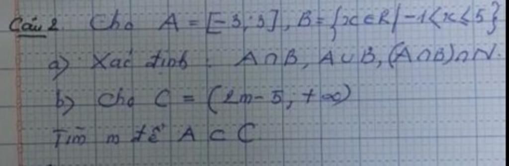`b)` Để `A ⊂ C` thì `2m - 5 < - 3`