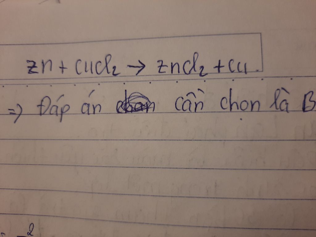 Đáp án cần chọn là B.Zn+CuCl2.