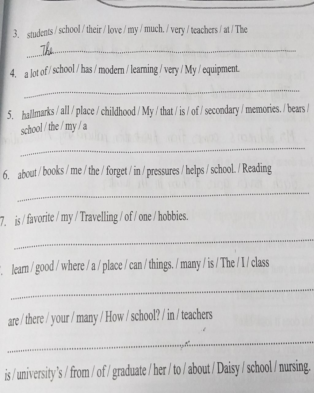 3. students/school/their / love / my / much. / very / teachers / at / The