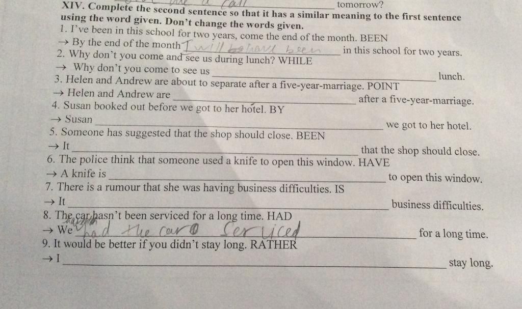 XIV. Complete the second sentence so that it has a similar meaning to the first sentence