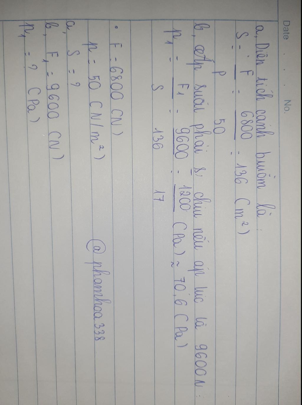 `p'` `=` `(F')/s` `=` `9600/136` `≈` `70,588(pa)`