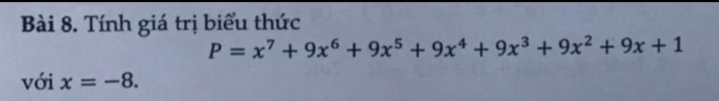 Thay tiếp `x=-8` vào `P` : `-8+1=-7`
